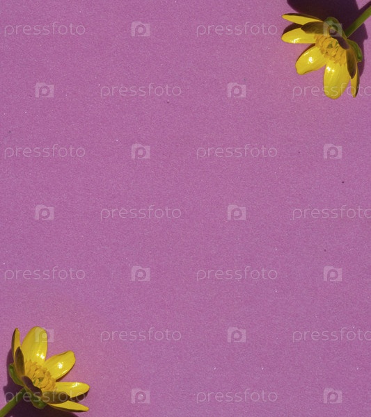 Яркая весенняя цветочная композиция. Желтые цветы на розовом фоне вид сверху. Фон для весенних открыток, приглашений