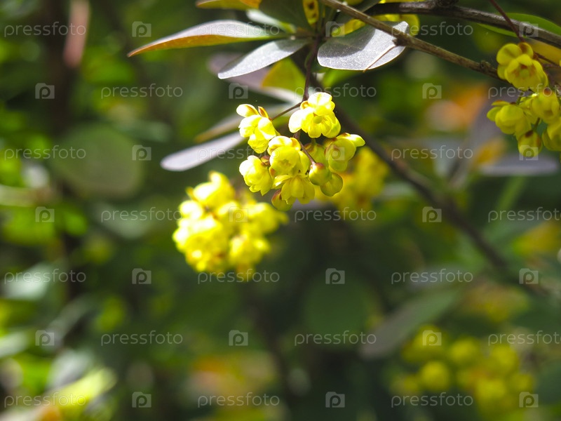 Куст обыкновенного барбариса (Berberis vulgaris) цветет желтыми цветами