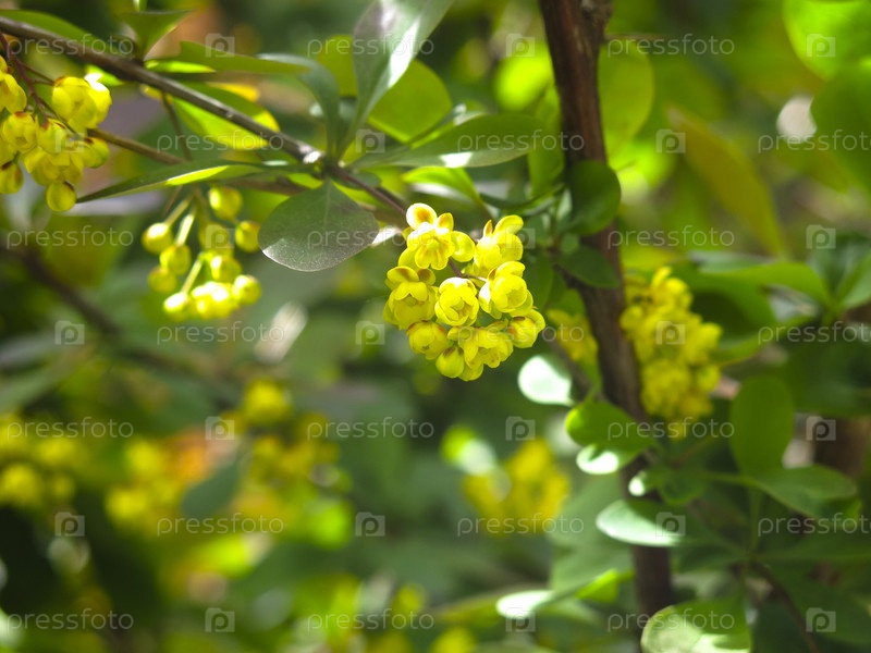 Куст обыкновенного барбариса (Berberis vulgaris) цветет желтыми цветами