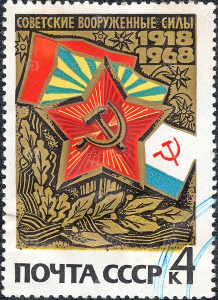 СССР, около 1968: Почтовая марка, посвященная 50-летию Вооруженных Сил СССР, из серии "Советские Вооруженные Силы 1918-1968"
