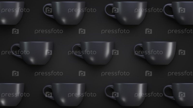 Фон темы горячих напитков. Черные керамические кружки на темном фоне