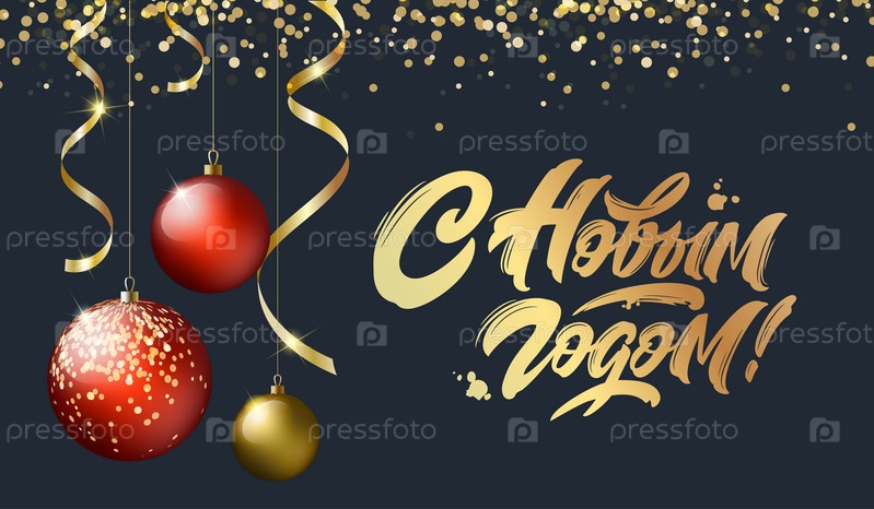 С Новым годом - русский праздник. С Новым годом рукописные надписи, типографский векторный дизайн для поздравительных открыток и плакатов. Русский перевод: С Новым годом. Векторная иллюстрация