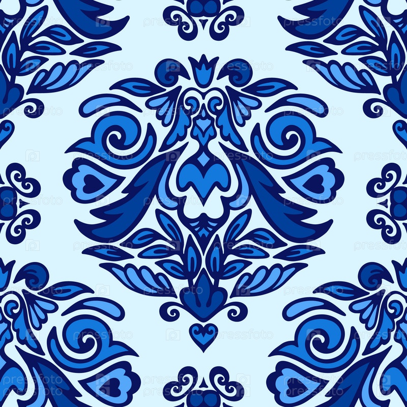 Дамаск вектор праздничный синий абстрактный бесшовный узор в стиле барокко медальон