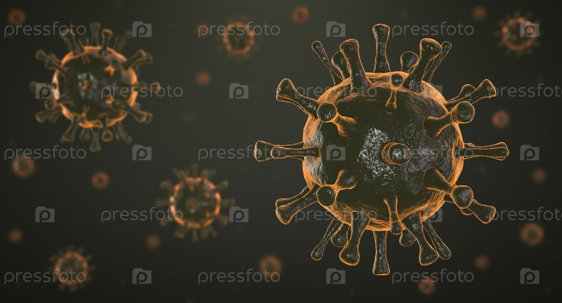 Фон темы коронавируса. Много вирусных агентов. Выборочный фокус