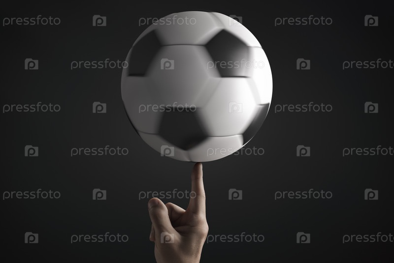 Футбольный мяч вращается на пальце. Мяч размыт в движении