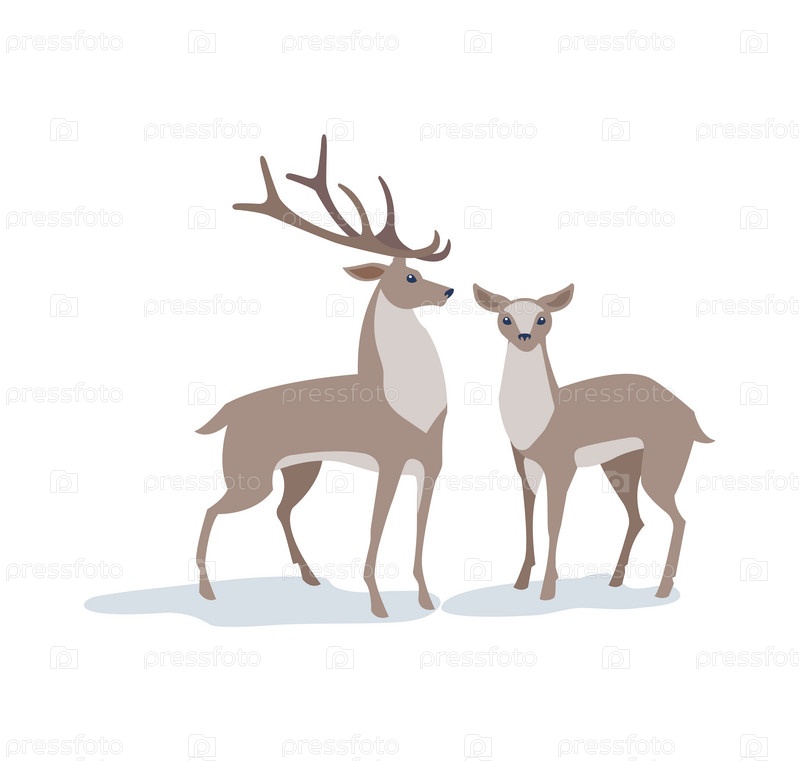 Два красных оленя. мужчина и женщина. красивая иллюстрация в плоском стиле. для рождественской открытки, баннера, плаката