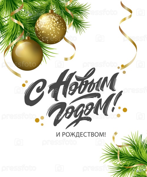 С Новым годом рукописные надписи, типографский векторный дизайн для поздравительных открыток и плакатов. Русский перевод: С Новым годом. Векторная иллюстрация