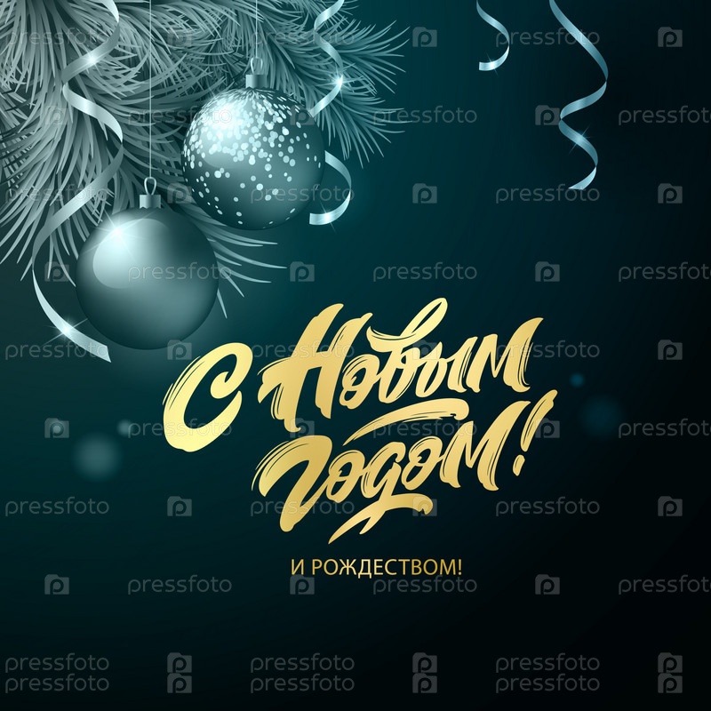 С Новым годом рукописные надписи, типографский векторный дизайн для поздравительных открыток и плакатов. Русский перевод: С Новым годом. Векторная иллюстрация