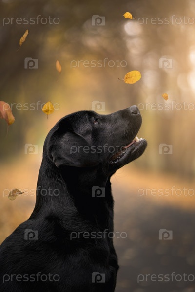 Лабрадор в осеннем парке, сентябрь