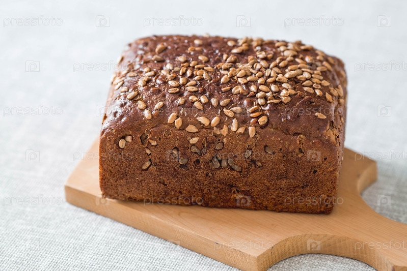 Свежий вкусный цельнозерновой ржаной хлеб с семенами крупным планом. Свежеиспеченный хлеб на деревянной доске. Контекст пекарни с вкусным хлебом. Кондитерские изделия