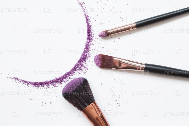 Тени и кисточка для макияжа изолированы на белом