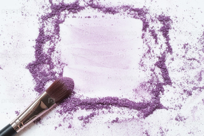 Тени и кисточка для макияжа изолированы на белом