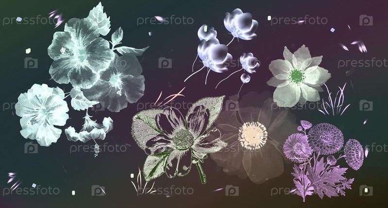 Цветы в винтажном стиле на черном фоне