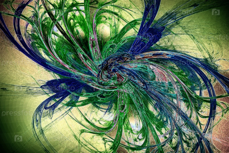 Фрактальное изображение: светящиеся цветные полосы и линии
