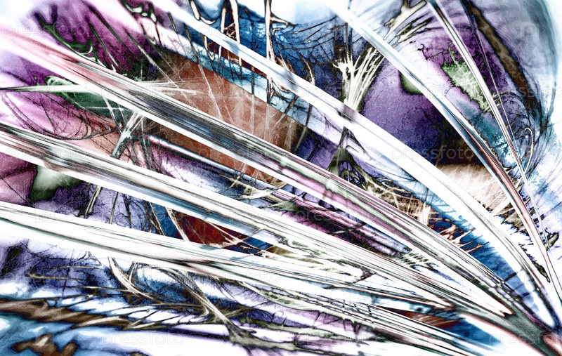 Фрактальное изображение: светящиеся цветные полосы и линии