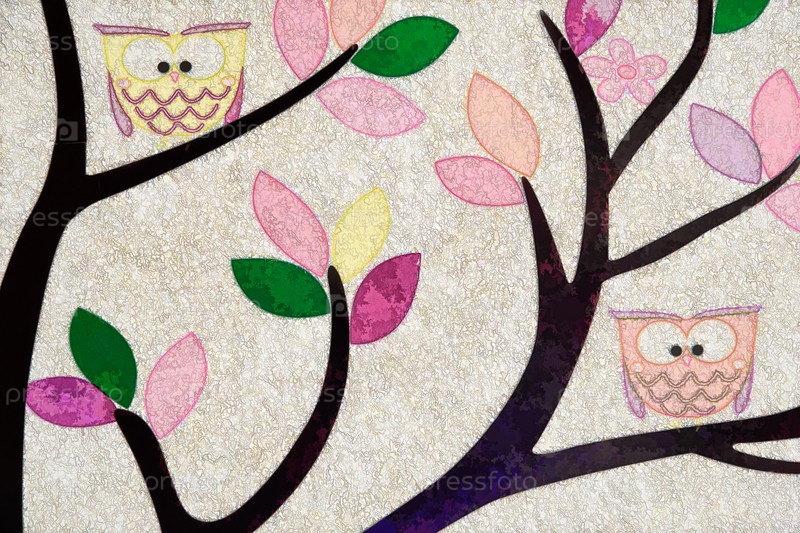Абстрактное изображение: две совы на дереве