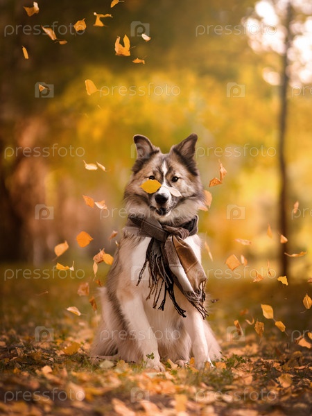 Большая собака в осеннем парке