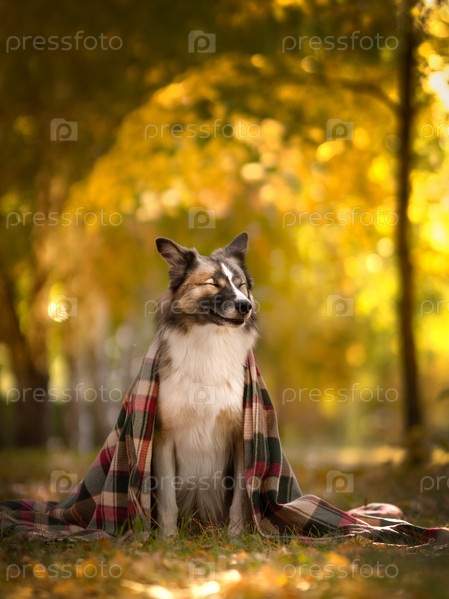 Большая собака в осеннем парке