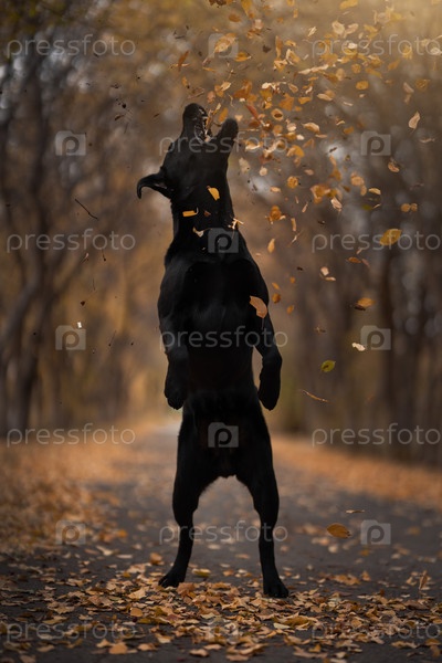 Лабрадор в осеннем парке, сентябрь