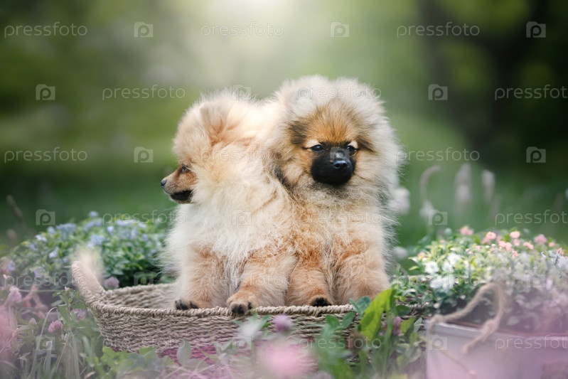 Щенки померанского шпица на улице