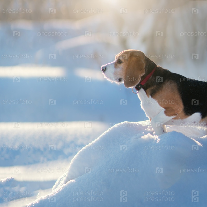 Собака бигль в снегу