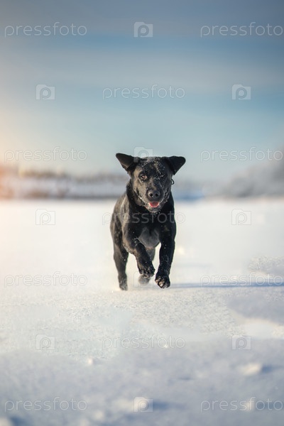 Лабрадор ретривер собака. Зимний день