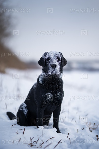 Лабрадор ретривер собака. Зимний день