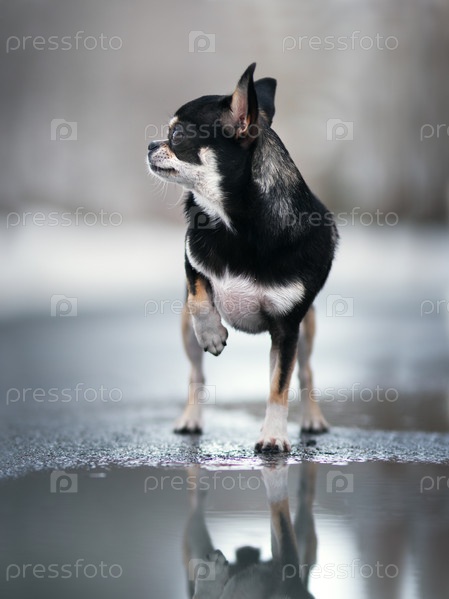 Собака чихуахуа. На улице мокро