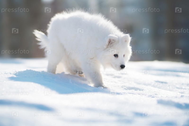 Щенок самоеда зимой