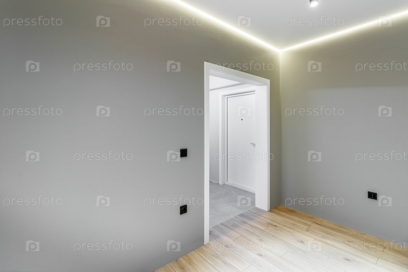 Пустая комната, белые двери с панелями в рамах. Вход