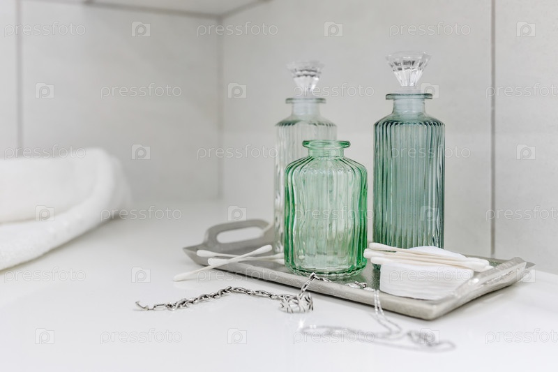 Декоративные бутылки как декор для ванной в светлом стиле