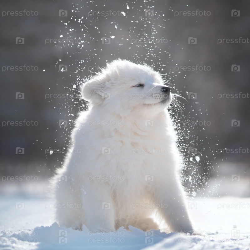 Щенок самоеда зимой