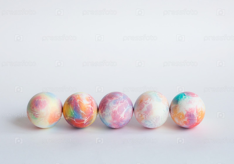 Яркие, разноцветные пасхальные яйца на красочном фоне. Минимальная концепция. Карточка с местом для копирования текста