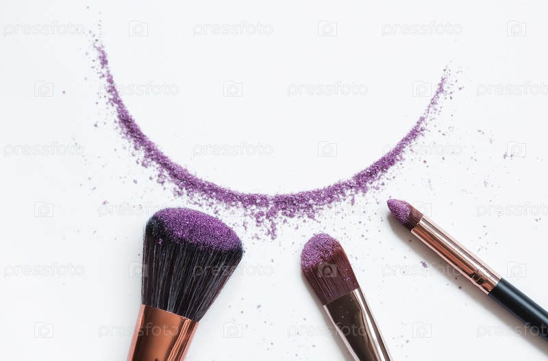 Тени и кисточка для макияжа изолированы на белом