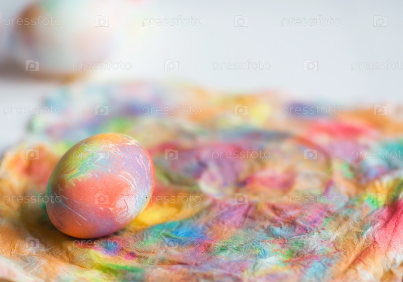 Яркие, разноцветные пасхальные яйца на красочном фоне. Минимальная концепция. Карточка с местом для копирования текста