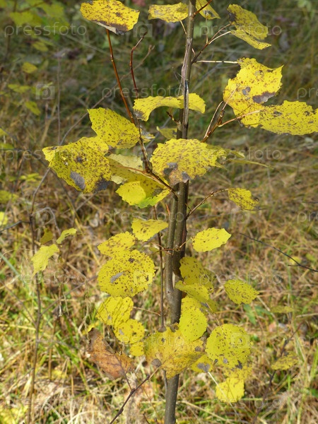 Желтые листья осины. Яркие краски осени. Бабье лето. Прогулка по осеннему лесу