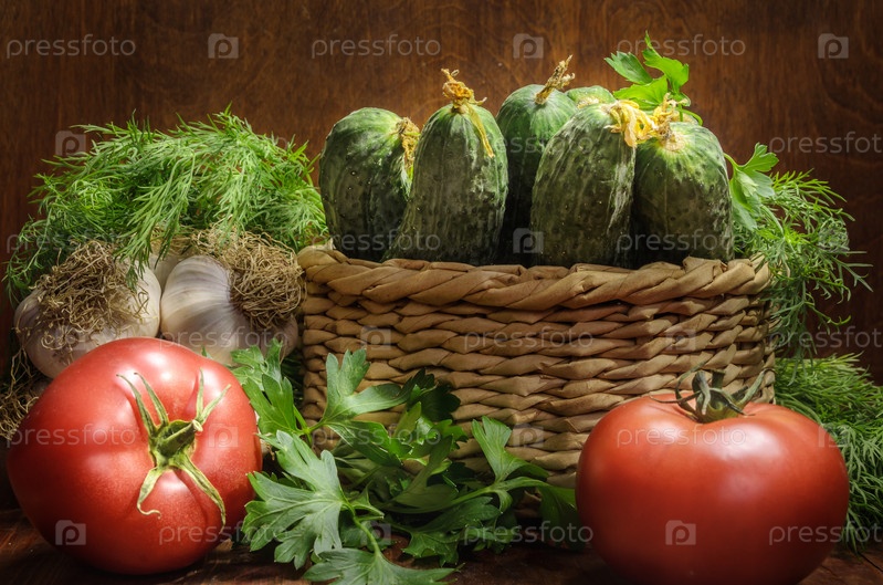 Свежие овощи на темном деревянном фоне в деревенском стиле