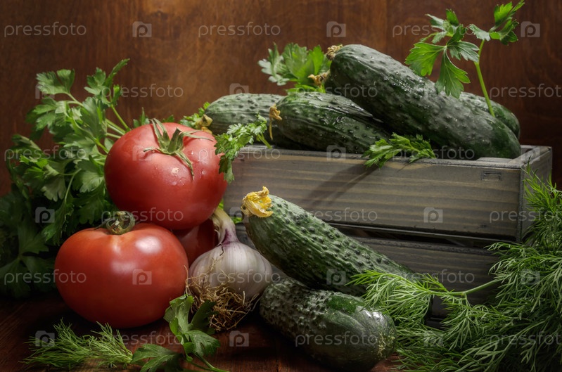 Свежие овощи на темном деревянном фоне в деревенском стиле