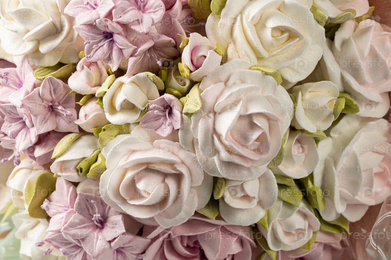 Зефирный букет цветов в подарочной коробке на светлом фоне