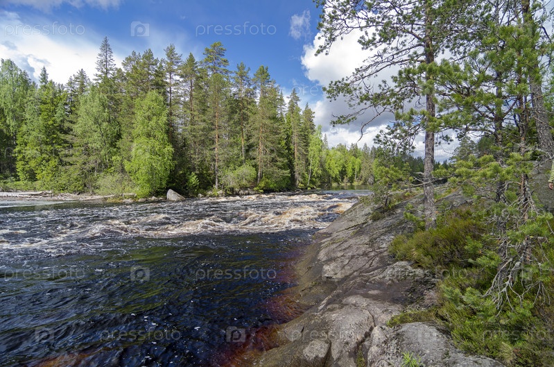 Порог "Собачий" на реке Южная Шуя. Карелия. Солнечный день в июне