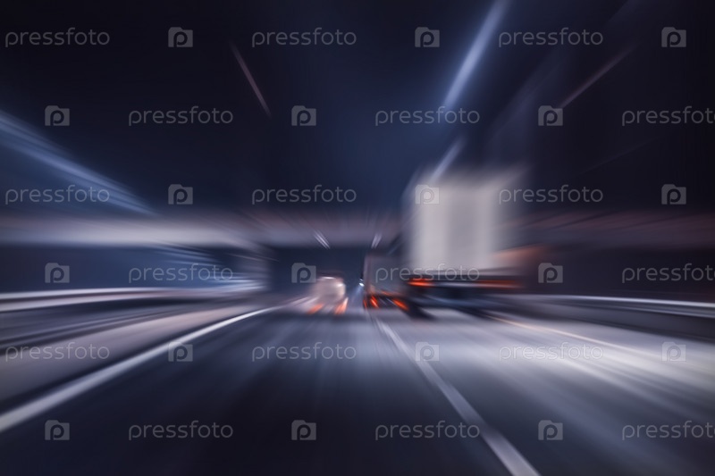 Грузовик движется по шоссе ночью