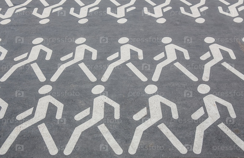 Пиктограммы людей, идущих рядами по асфальту