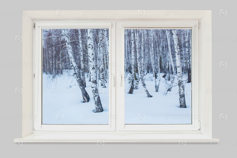 Вид из окна на зимний пейзаж