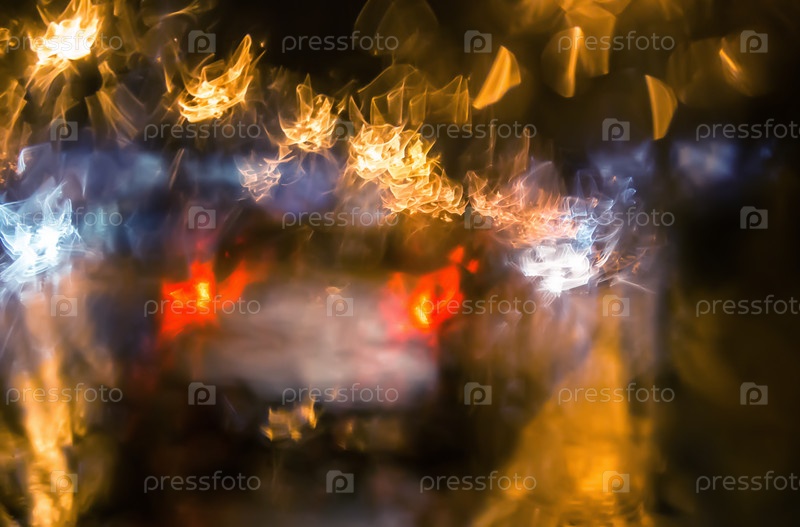Машина на ночной мокрой освещенной дороге под дождем