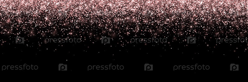 Падающие частицы розового золота на черном фоне, широкий баннер