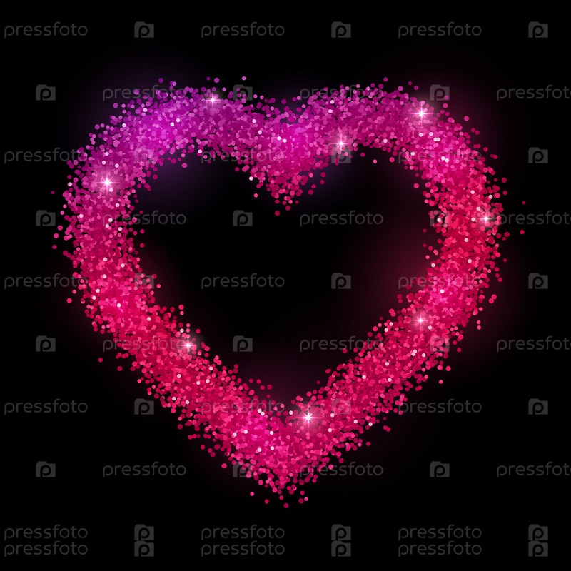 Блестящая рамка сердца на черном фоне. Эффект розово-фиолетового градиента