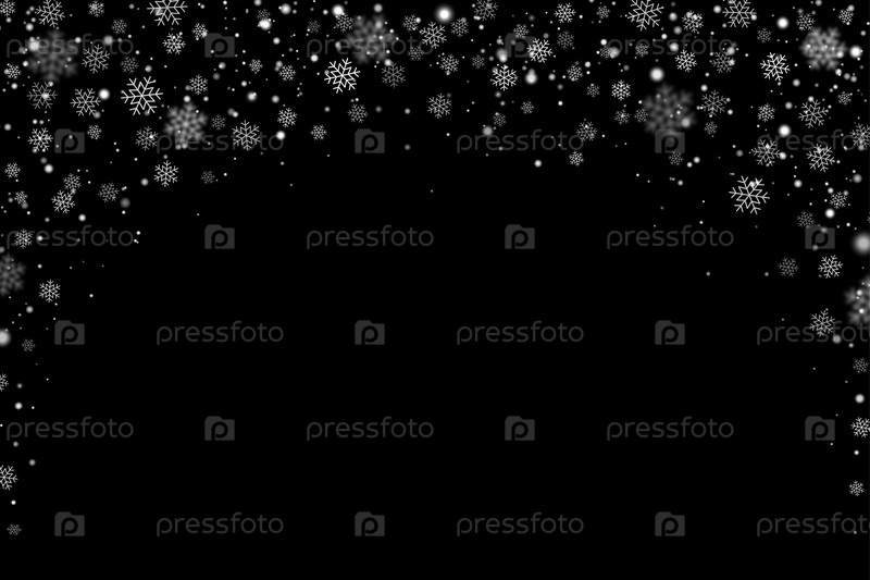 Зимний снег и снежинки арки на черном фоне