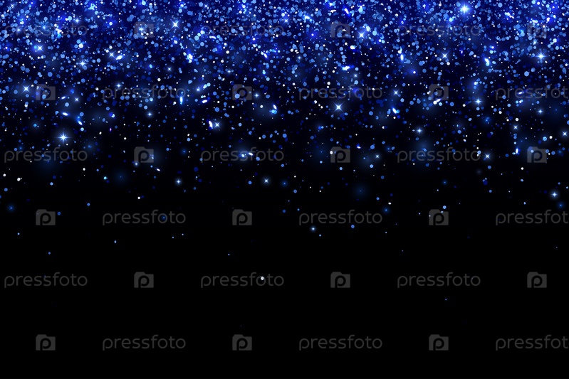 Синие падающие частицы на черном фоне, горизонтальная ориентация