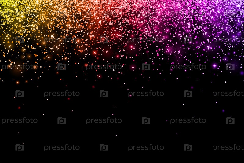 Многоцветные падающие частицы со светящимися огнями на черном фоне