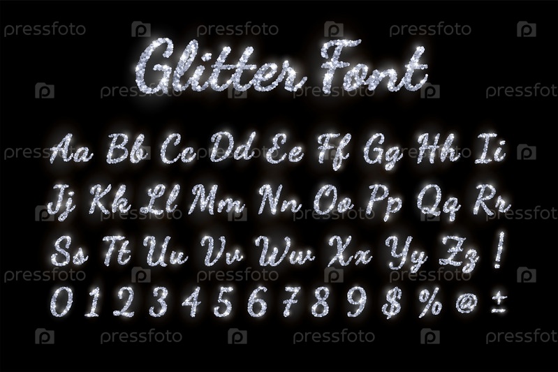 Серебряный блеск блестящий праздничный шрифт со светящимися огнями на черном фоне